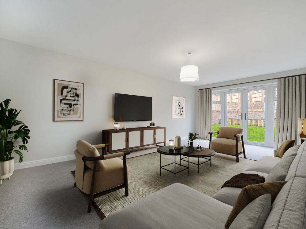 The first floor boasts an exceptional open-living space – a true heart of the home – combining a generous lounge area, a contemporary fitted kitchen, and a dedicated dining space. Flooded with natural light, this expansive layout is perfectly designed for modern family living and effortless entertaining.